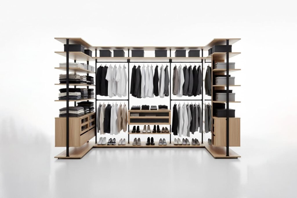 Faites l’inventaire complet des équipements et accessoires de rangement dont vous avez besoin en notant leurs dimensions. Identifiez les éléments importants : tringles, étagères, tiroirs, boîtes de rangement, porte-chaussures.
