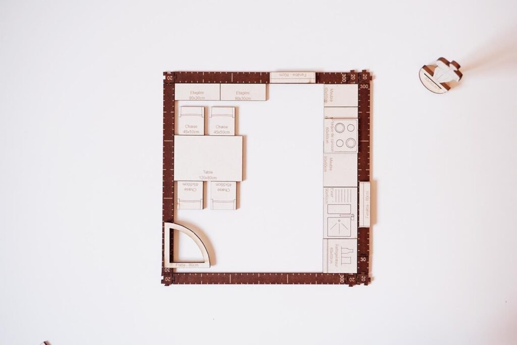 Le kit Yoja est un outil à l'échelle 1/25 pour dessiner le plan de votre cuisine 10m2 et tester vos configurations. En quelques minutes, vous vérifiez que l'axe de circulation est fluide et que vos meubles s'intègrent bien dans vos dimensions réelles.