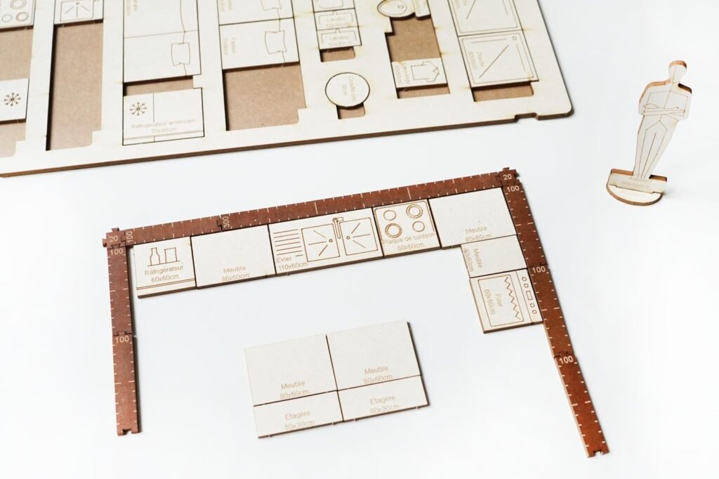 Le kit Yoja est un outil à l'échelle 1/25 qui vous permet de visualiser l'aménagement de votre cuisine et de tester différentes configurations avant de vous lancer. Vous déplacez les meubles et les équipements, vous vérifiez les axes de circulation et vous vous assurez d'un agencement pratique et fluide.