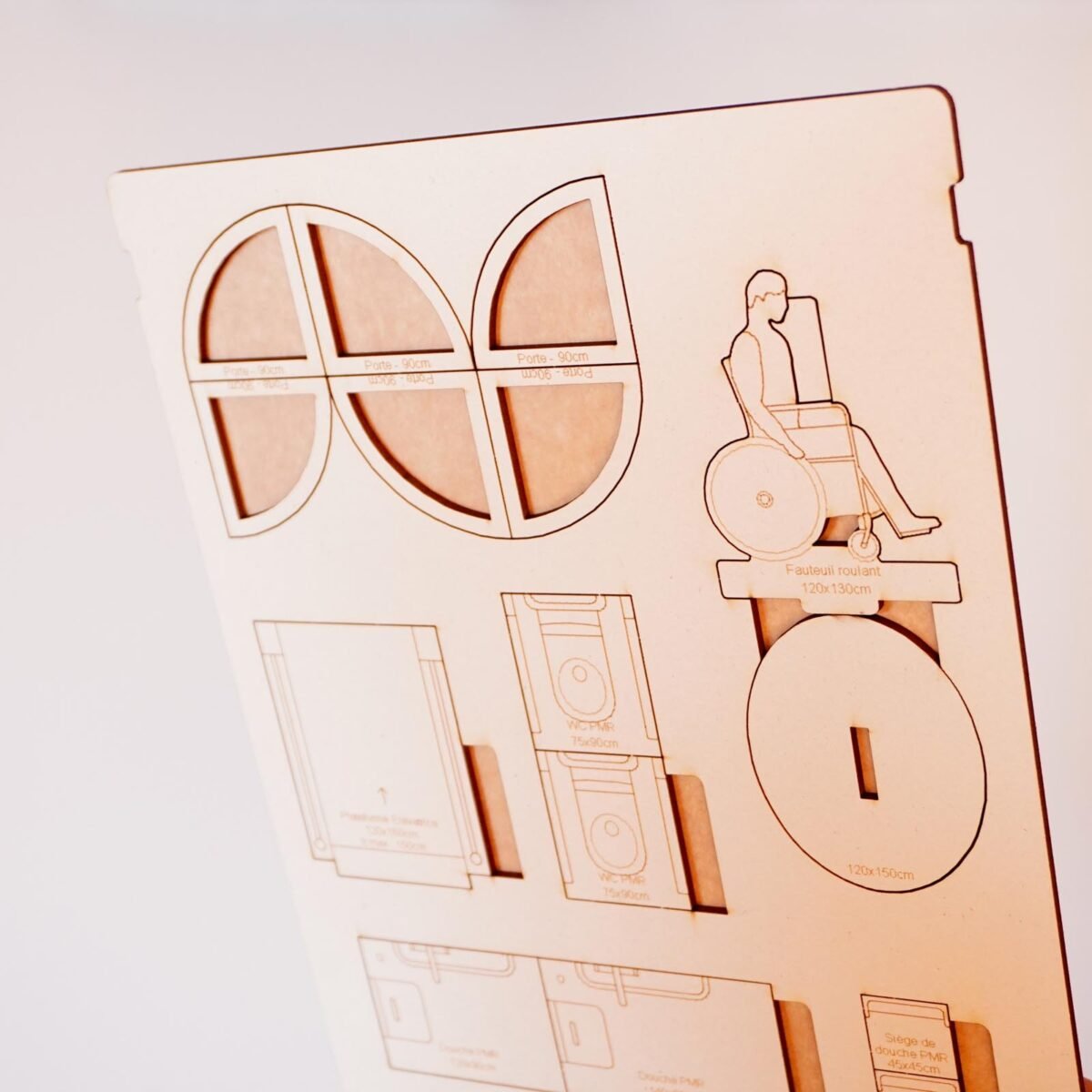 L’extension PMR du kit Yoja est une collection spécialisée d’éléments à l’échelle 1/25e destinée à faciliter l’aménagement d’espaces accessibles aux personnes à mobilité réduite. Cette extension essentielle vient compléter le kit Yoja original en proposant des gabarits adaptés aux normes d’accessibilité modernes.