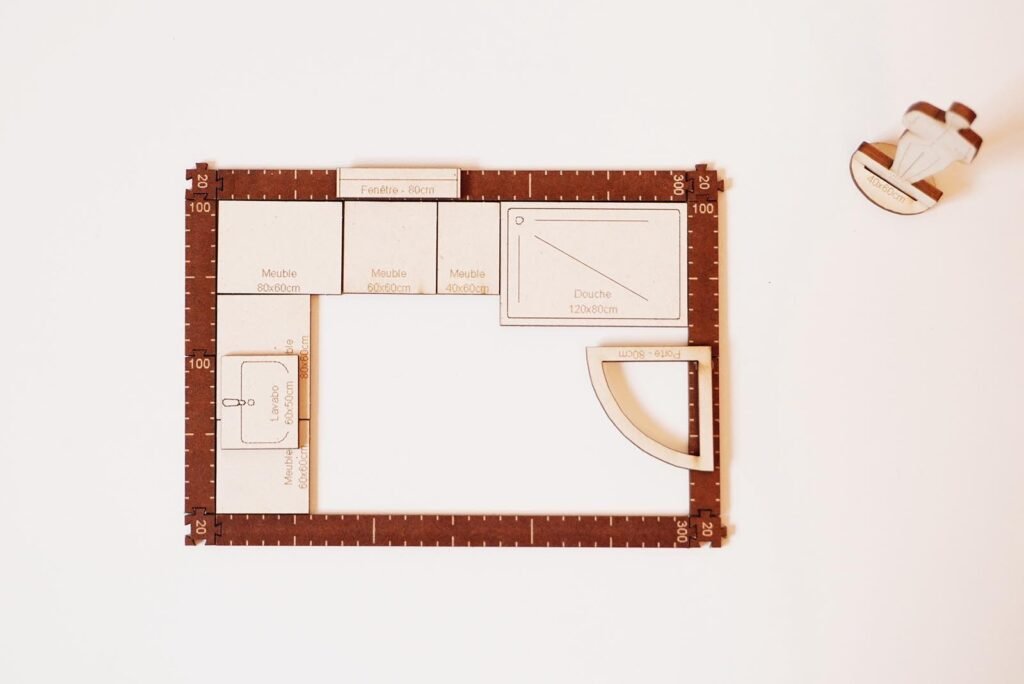 Le kit Yoja est un outil à l'échelle 1/25 pour dessiner votre plan de salle de bain 6m2 et tester vos configurations. Vous vérifiez les ouvertures et choisissez une solution cohérente avant d'engager des travaux.
